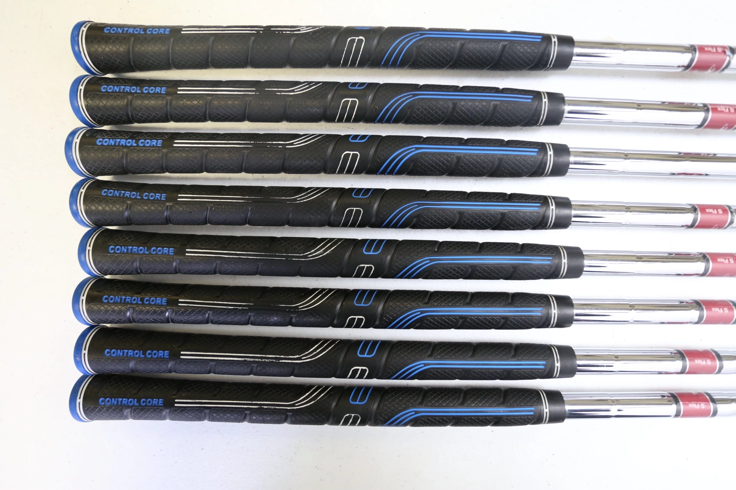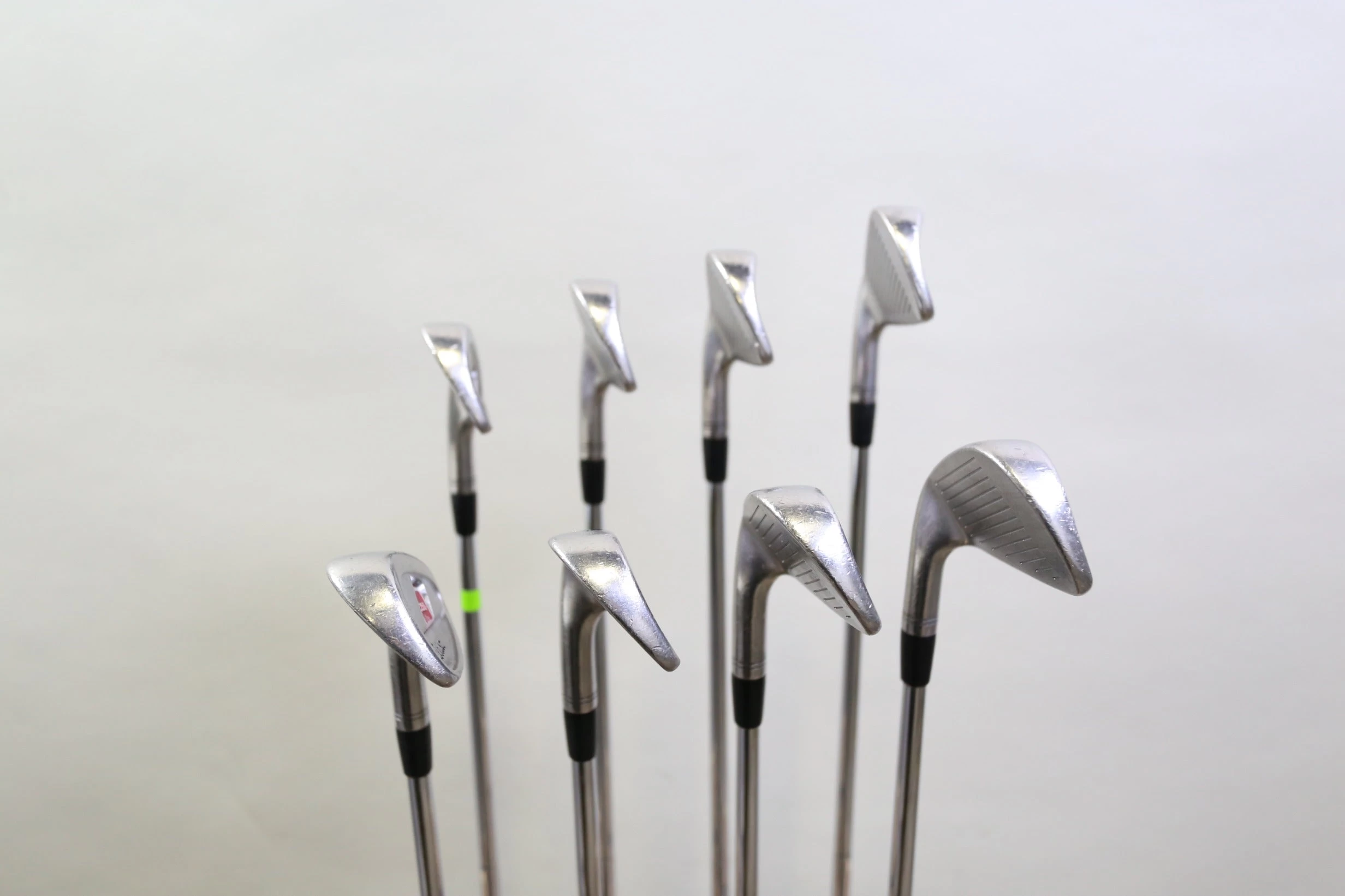 GOOD – This iron set is in good condition. There is average wear around the heads and on the faces of the clubs from regular use. There are very small markings and scratches along the shafts from normal use and storage. The grips are in good condition with some wear from regular use and storage. Please see pictures for more details.