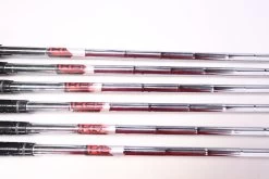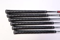 VALUE – This iron set is in value condition. There is consistent wear around the heads and on the faces of the clubs from regular use. There are very small markings and scratches along the shafts from normal use and storage. The grips are in good condition with some wear from regular use and storage. Please see pictures for more details. *Metal has peeled off on some areas of each club.