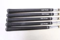 GOOD – This iron set is in good condition. There is average wear around the heads and on the faces of the clubs from regular use. There are very small markings and scratches along the shafts from normal use and storage. The grips are in good condition with some wear from regular use and storage. Please see pictures for more details.