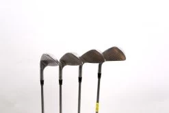 GOOD – This iron set is in good condition. There is average wear around the heads and on the faces of the clubs from regular use. There are very small markings and scratches along the shafts from normal use and storage. The grips are in good condition with some wear from regular use and storage. Please see pictures for more details.