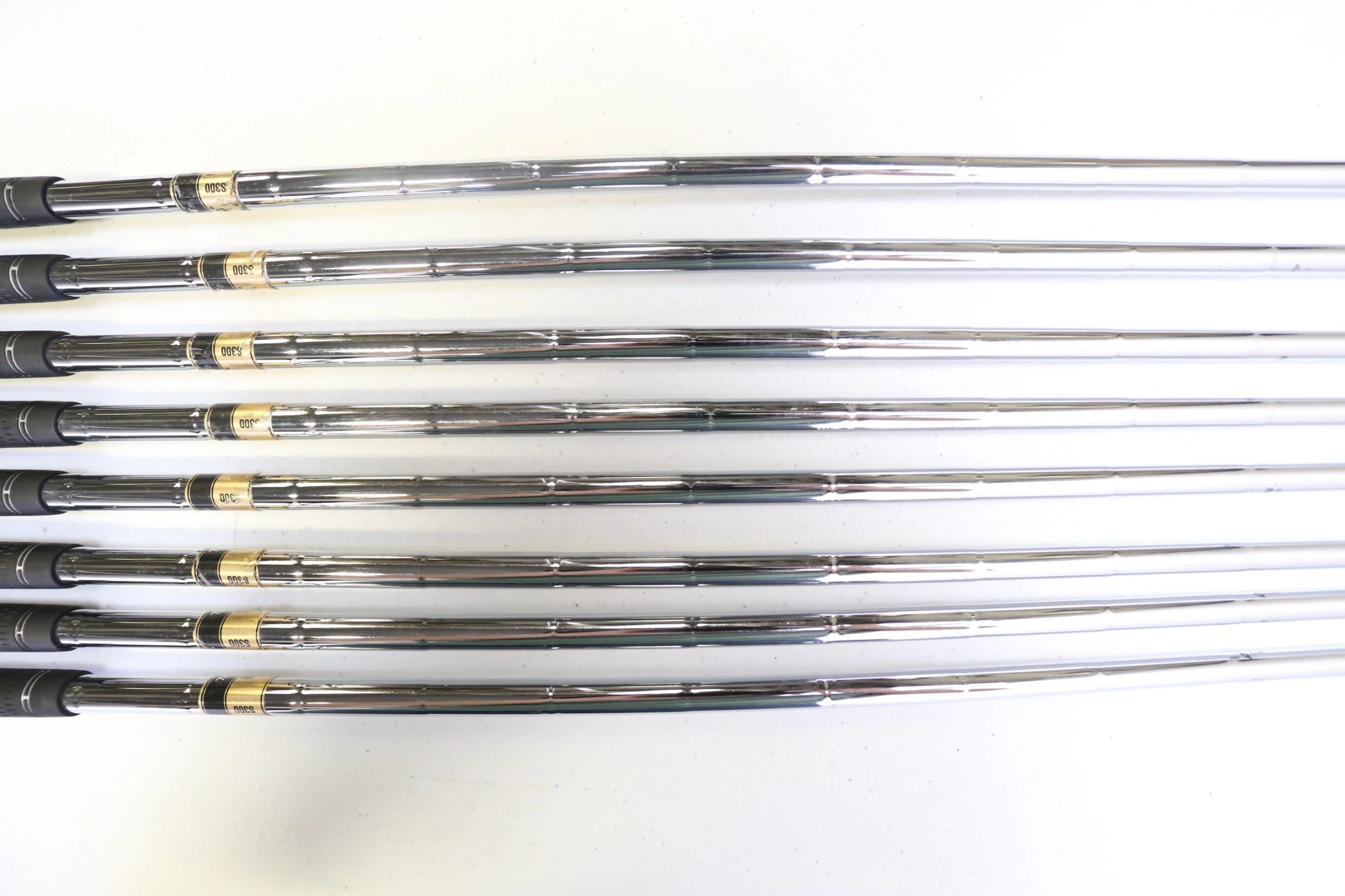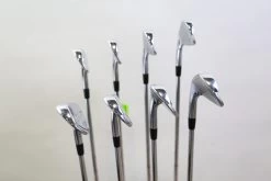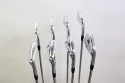 GOOD – This iron set is in good condition. There is average wear around the heads and on the faces of the clubs from regular use. There are very small markings and scratches along the shafts from normal use and storage. The grips are in good condition with some wear from regular use and storage. Please see pictures for more details.