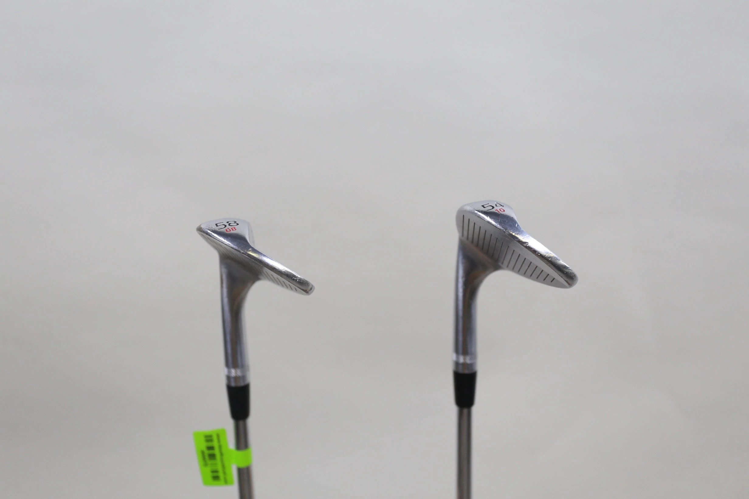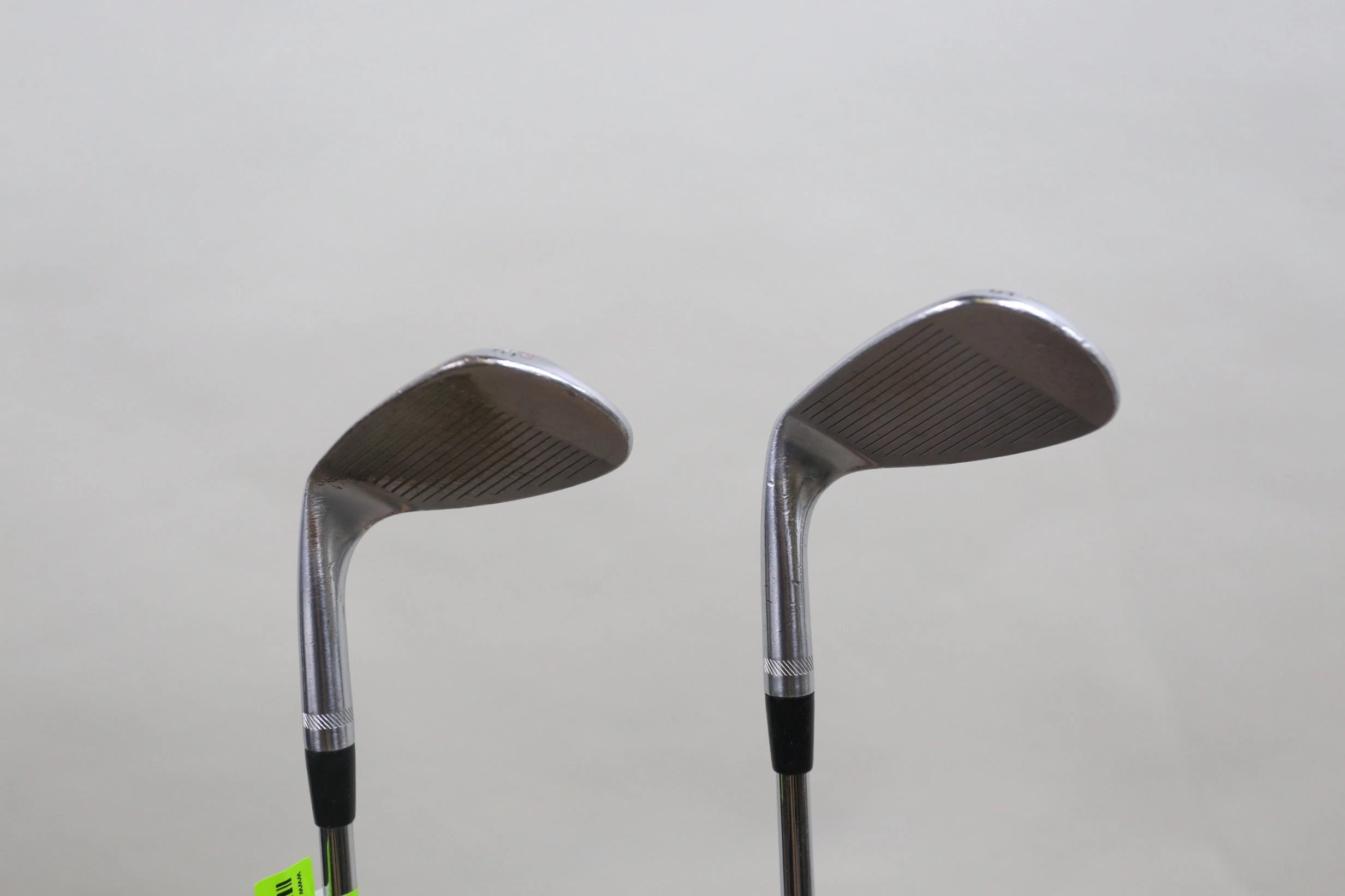 GOOD – This wedge set is in good condition. There is average wear around the heads and on the faces of the clubs from regular use. There are very small markings and scratches along the shafts from normal use and storage. The grips are in good condition with some wear from regular use and storage. Please see pictures for more details.**Sand wedge 54* loft 35 inches, Lob wedge 58* loft 34.5 inches**